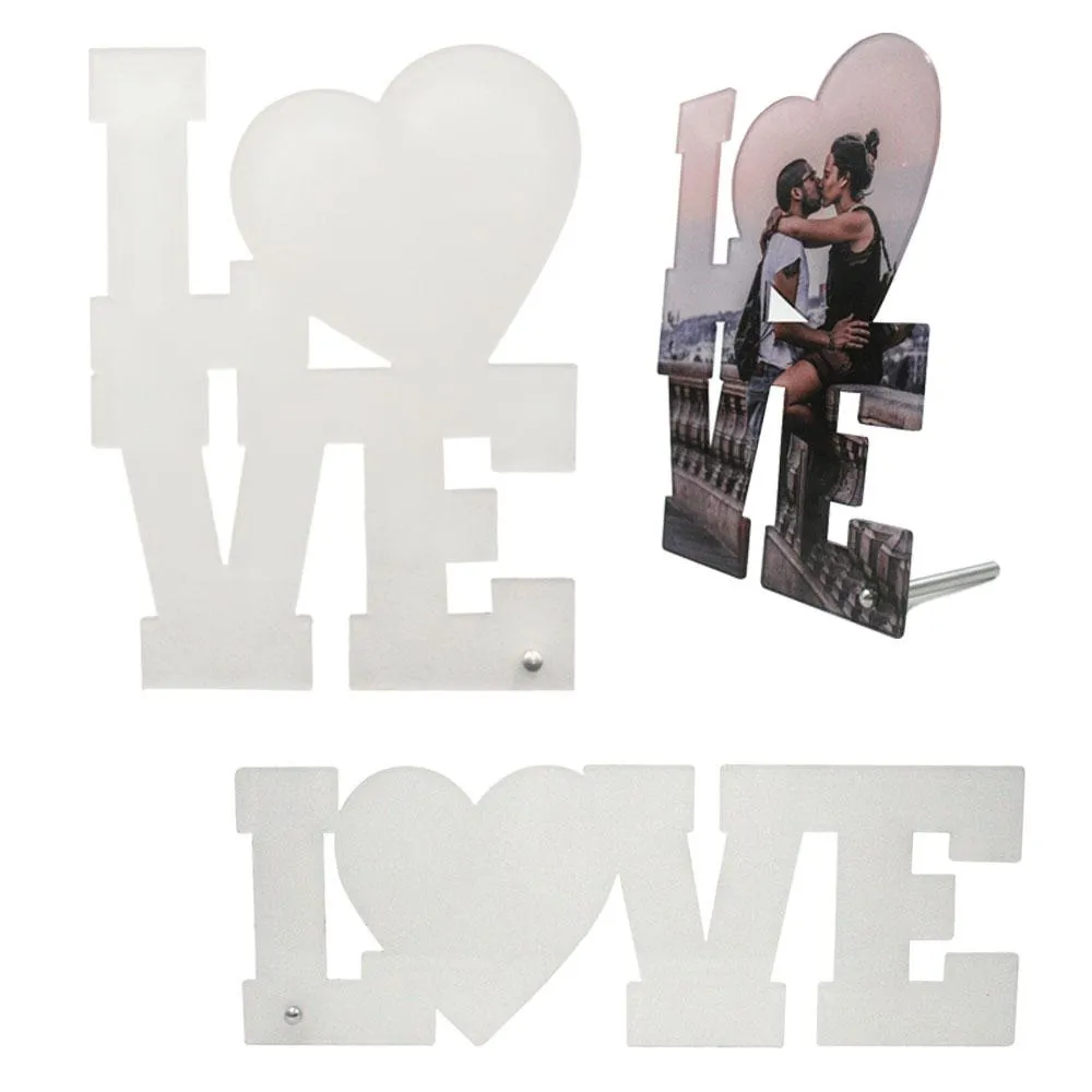 Acrylic photo frame Love prepared to personalize using the sublimation technique. They have a special coating to sublimate directly on photo frames.