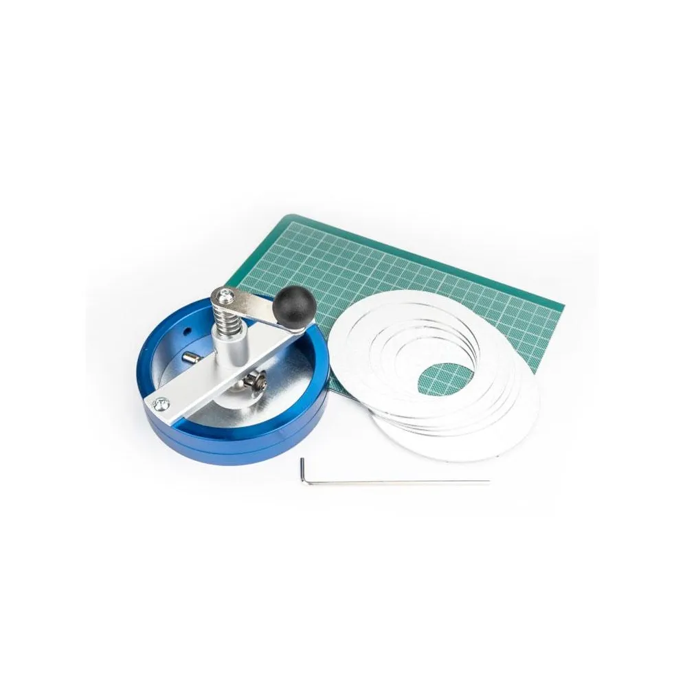 The Badge paper cutter CM-500 is a tool for cutting the paper of magnets and round badges, which can cut 6 available sizes Ø25, Ø31, Ø38, Ø50, Ø59 and Ø75 mm. It has a viewing window that allows you to view the design, to center it and cut the designs with great precision. This cutter is very fast and easy to use. You can cut several papers up to 150 gr at the same time. Includes 6 templates corresponding to each of the sizes to be cut, to make clean cuts, leaving the designs ready to assemble. It is the ideal complement to any of the machines for mounting magnets and round badges.