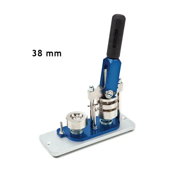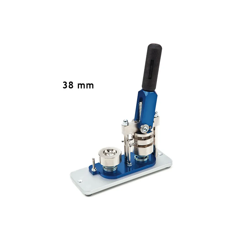 The Button badge making machine with fixed mold B-500/38 is a compact tool for creating fridge magnets and round badges which has a fixed size mold to mount different products of a single measure of Ø38 mm. It is a European-made, high-quality, robust and easy to operate machine, for the production of both small and large quantities of magnets or badges. Depending on the skill of the operator, about 400 magnets or badges can be mounted per hour.