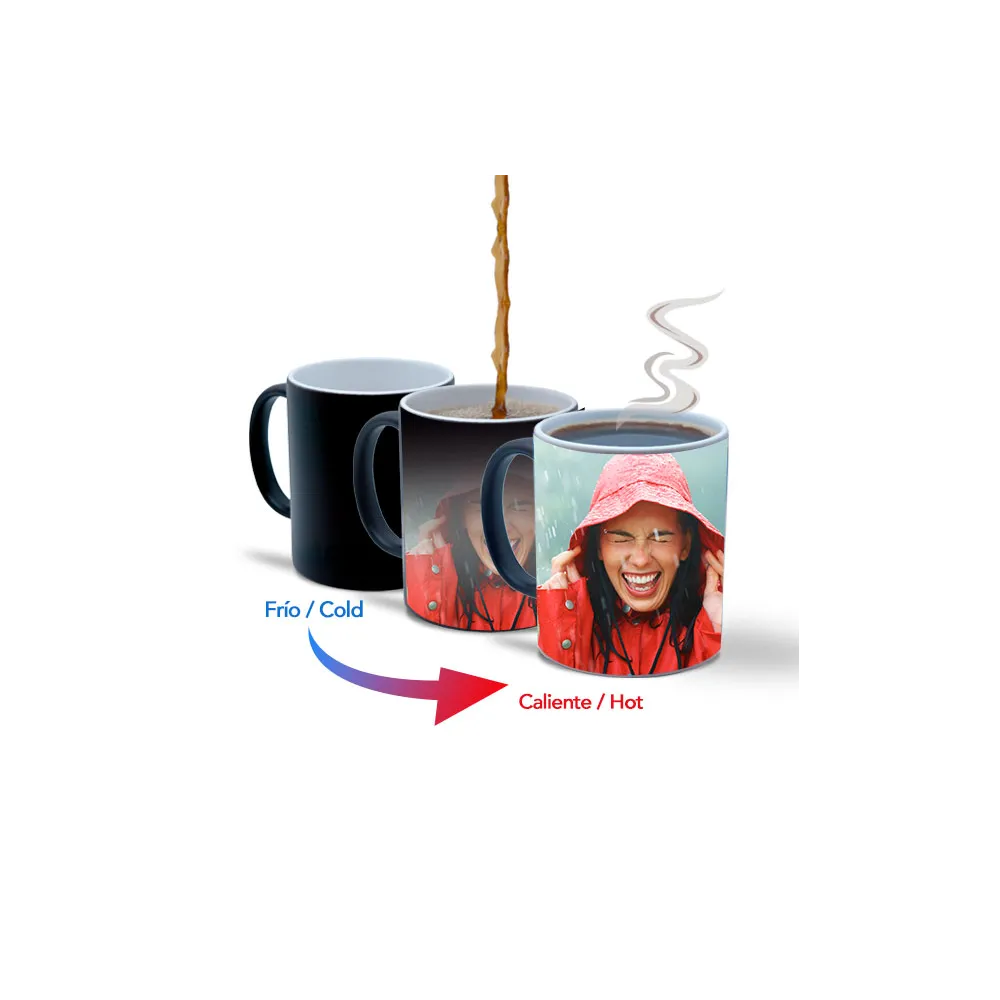 Customizable ceramic magic mugs using the sublimation technique. It is not recommended to use a dishwasher, as it may reduce the lifespan of the coating
