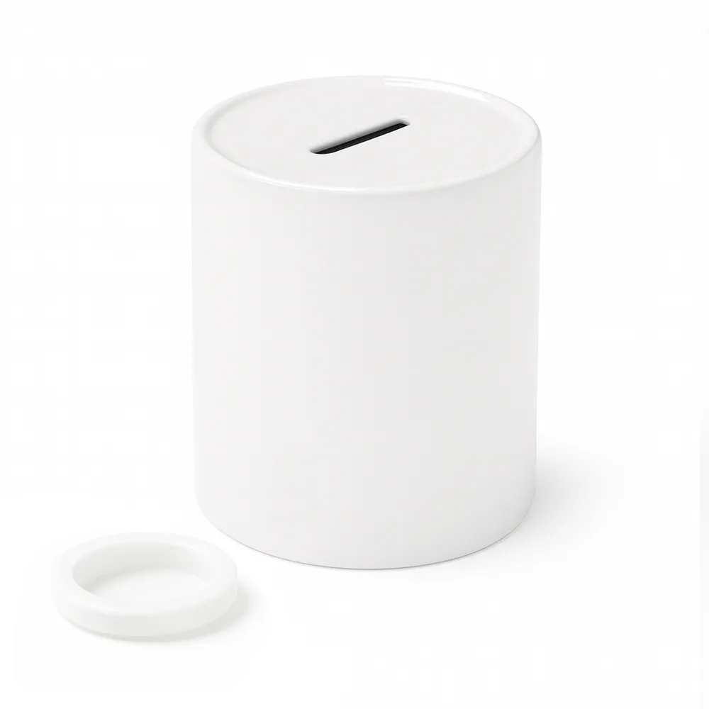 €2.96 Price includes VATThe Customizable ceramic money box is a high-quality, fully sublimatable cylindrical coin bank, ideal for professional customisation. Its coating ensures vivid colours, excellent durability and a wide printing area for creating full-wrap, long-lasting designs.