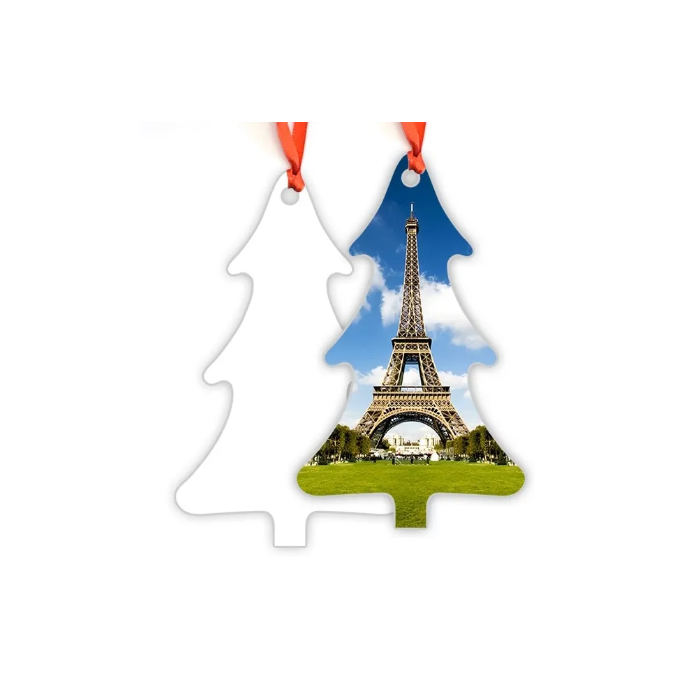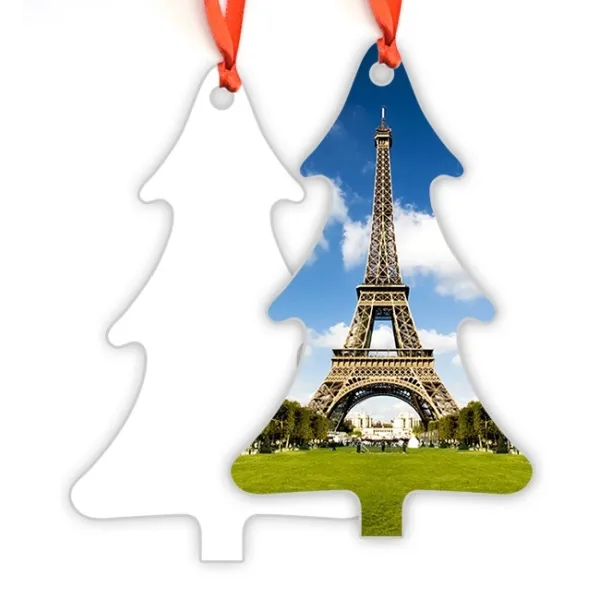 Customizable Christmas tree for ornament using the technique of sublimation. With a glossy finish, to give a special touch to a very practical and original product. The reverse is made of wood