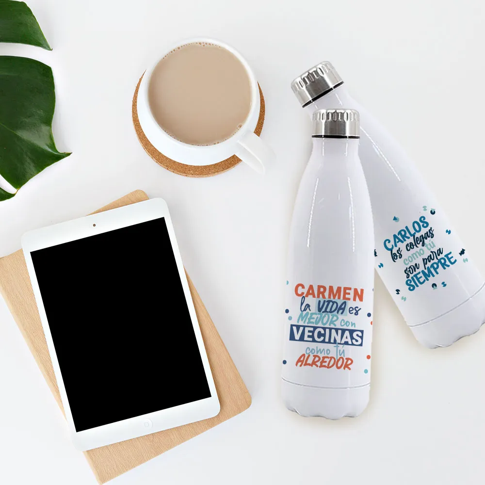 Cola Shape Stainless Steel Bottle 350 ml customizables using the sublimation technique.
