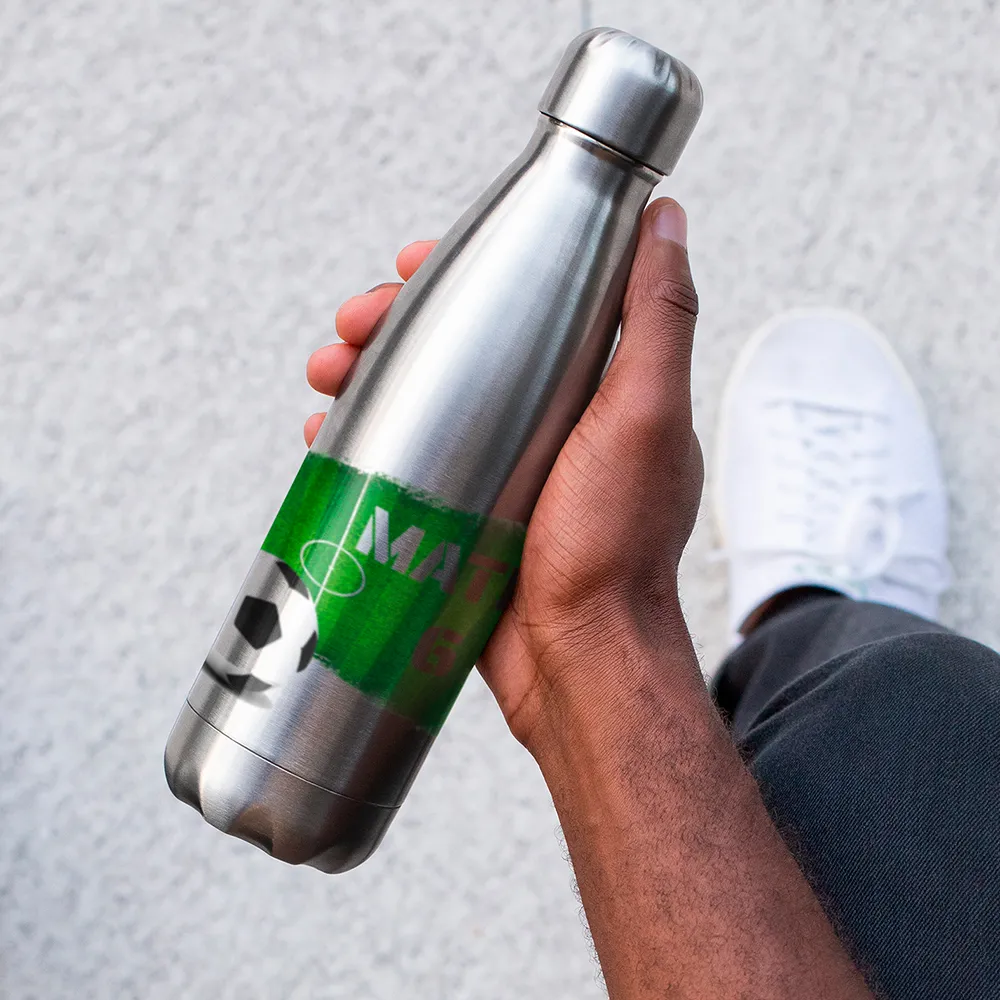 - Stainless steel bottle, perfect for travelling, due to its stockiness and lightness.