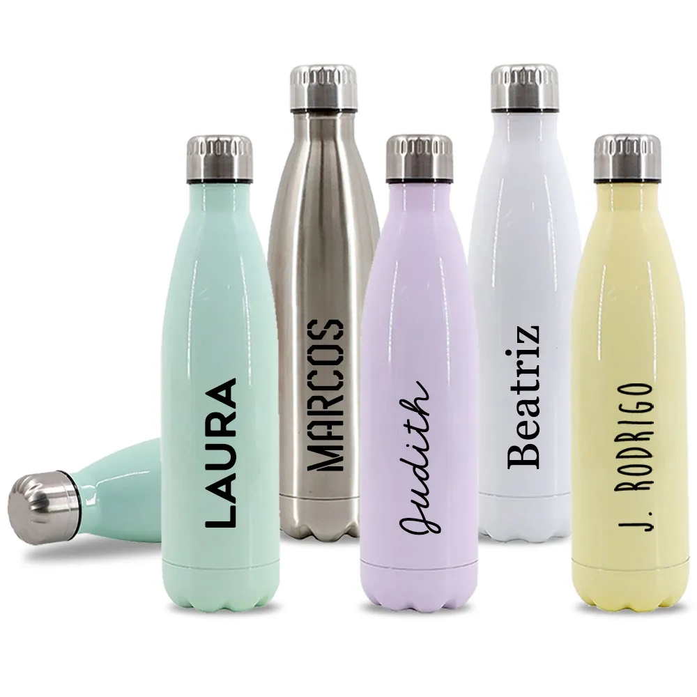 Cola Shape Stainless Steel Bottle 750 ml customizables using the sublimation technique.