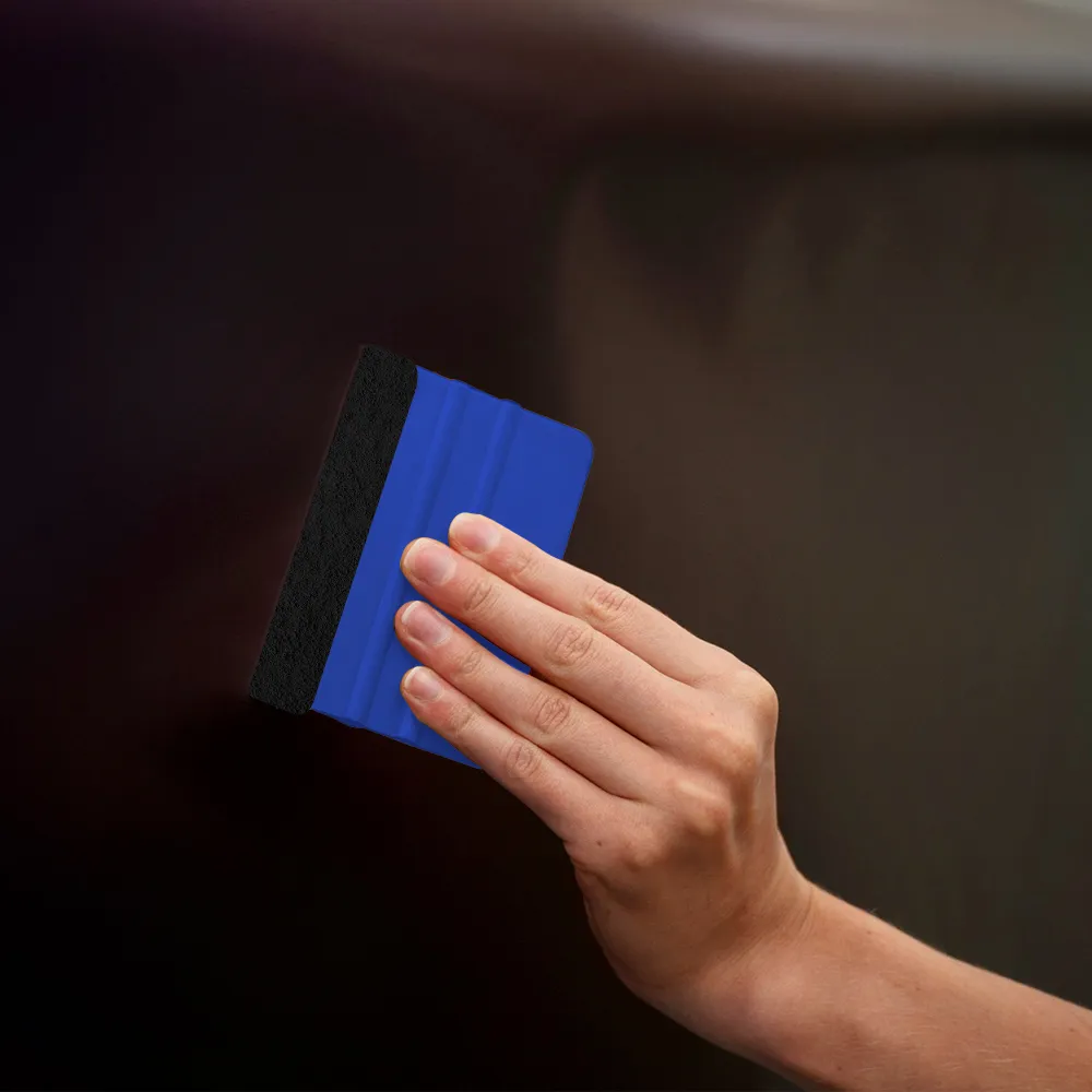 Felt block squeegee for vinyls combines the advantages of rigid and felt spatulas, allowing strong pressure to be exerted on the material to be worked, and gently treating the material itself. It adapts perfectly to curved or uneven surfaces. Ideal spatula for the application of vinyls, films, labels, tapes, screen printing and pressure sensitive applications.
