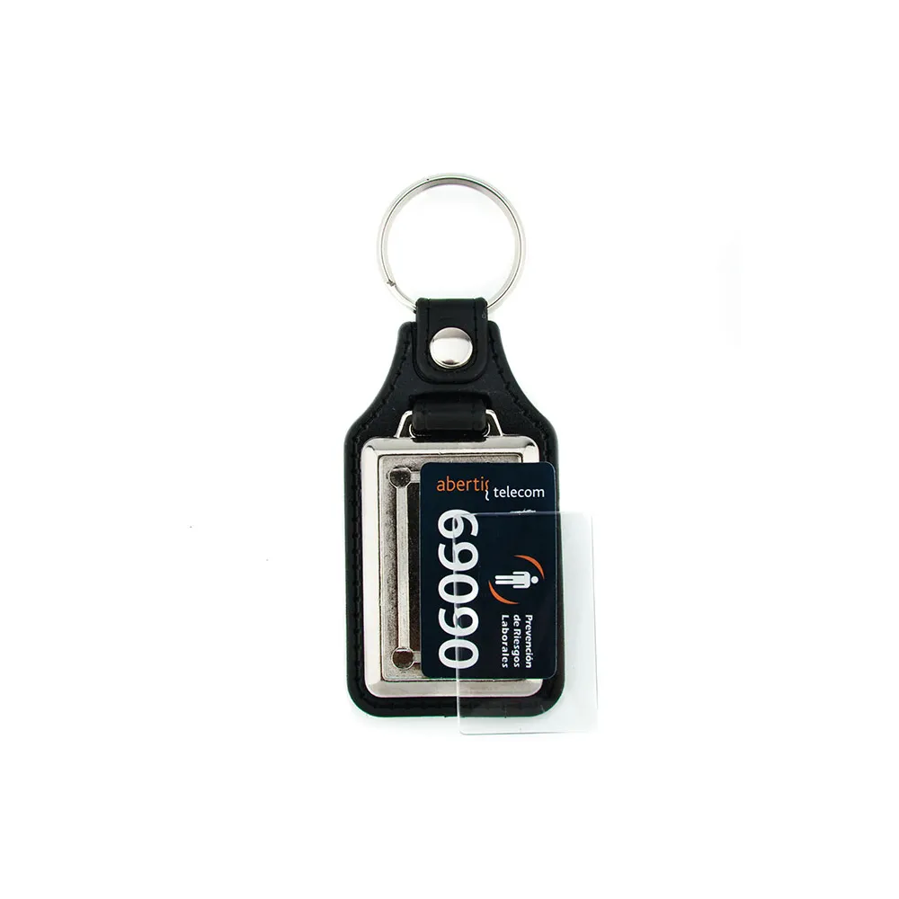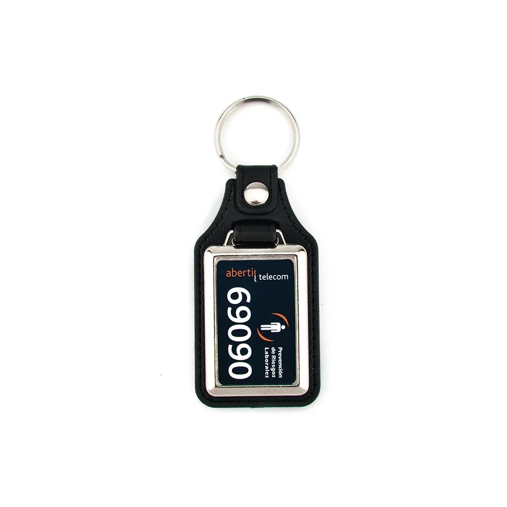 €1.85 Price includes VAT €2.06 -10%Imitation leather rectangular keychains MD-40 include all the necessary parts to create your own personalized metal keyrings: the imitation leather body with metal pocket and the acrylic magnifying glass. The 25 x 40 mm rectangular printing surface is ideal for an image, a logo or a text. To cut the design it is recommended to use a cutting die.