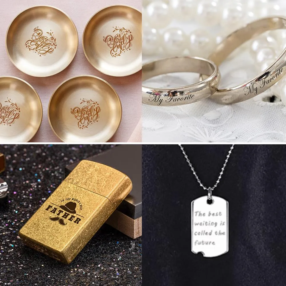 - Artfully engraves: stainless steel, aluminium alloy, gold, silver, titanium, plastic, and many more.