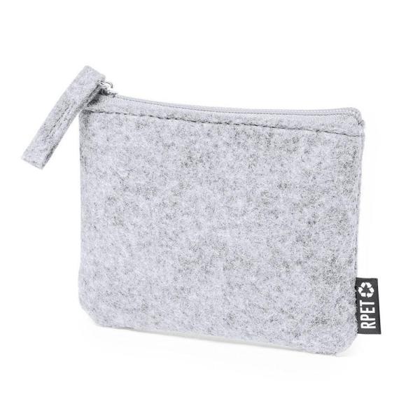 The Recycled felt wallet is made from rPET plastic with a zipper closure and matching puller, and also features a distinctive rPET side label.