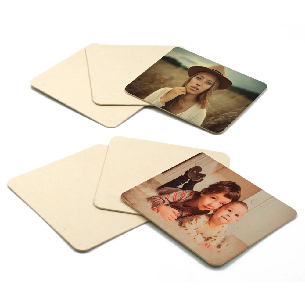 €2.12 Price includes VAT €2.65 -20%Square natural cardboard coasters customizable using the sublimation method.