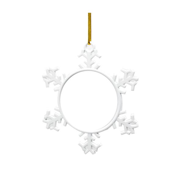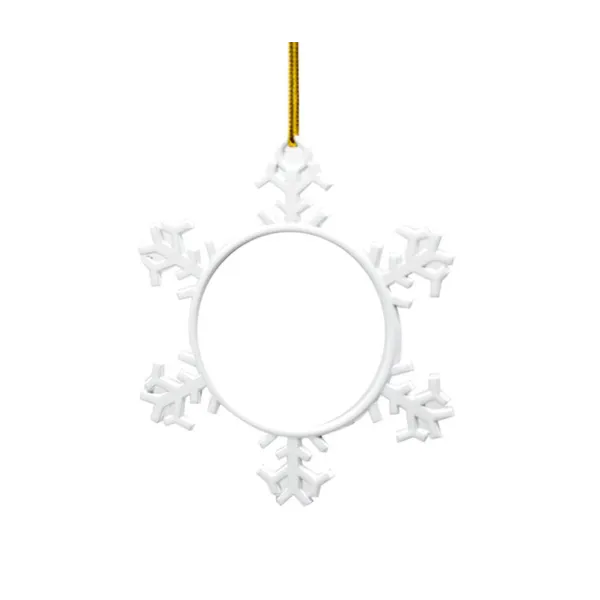 Adorno copo de nieve metálico personalizables usando la técnica de la sublimación. Fabricados en metal con forma de copo de nieve, ideales para dar un toque navideño y personal. Sublimables a 2 caras.