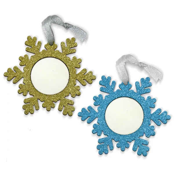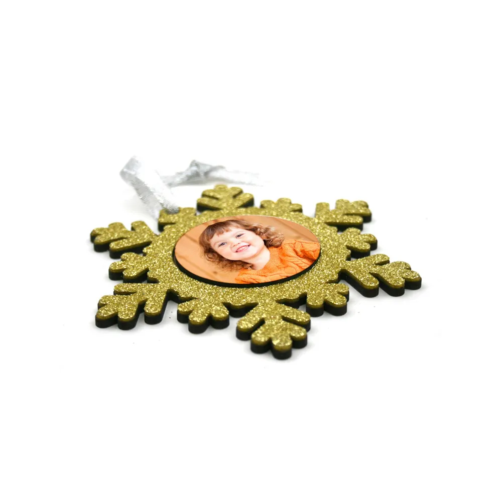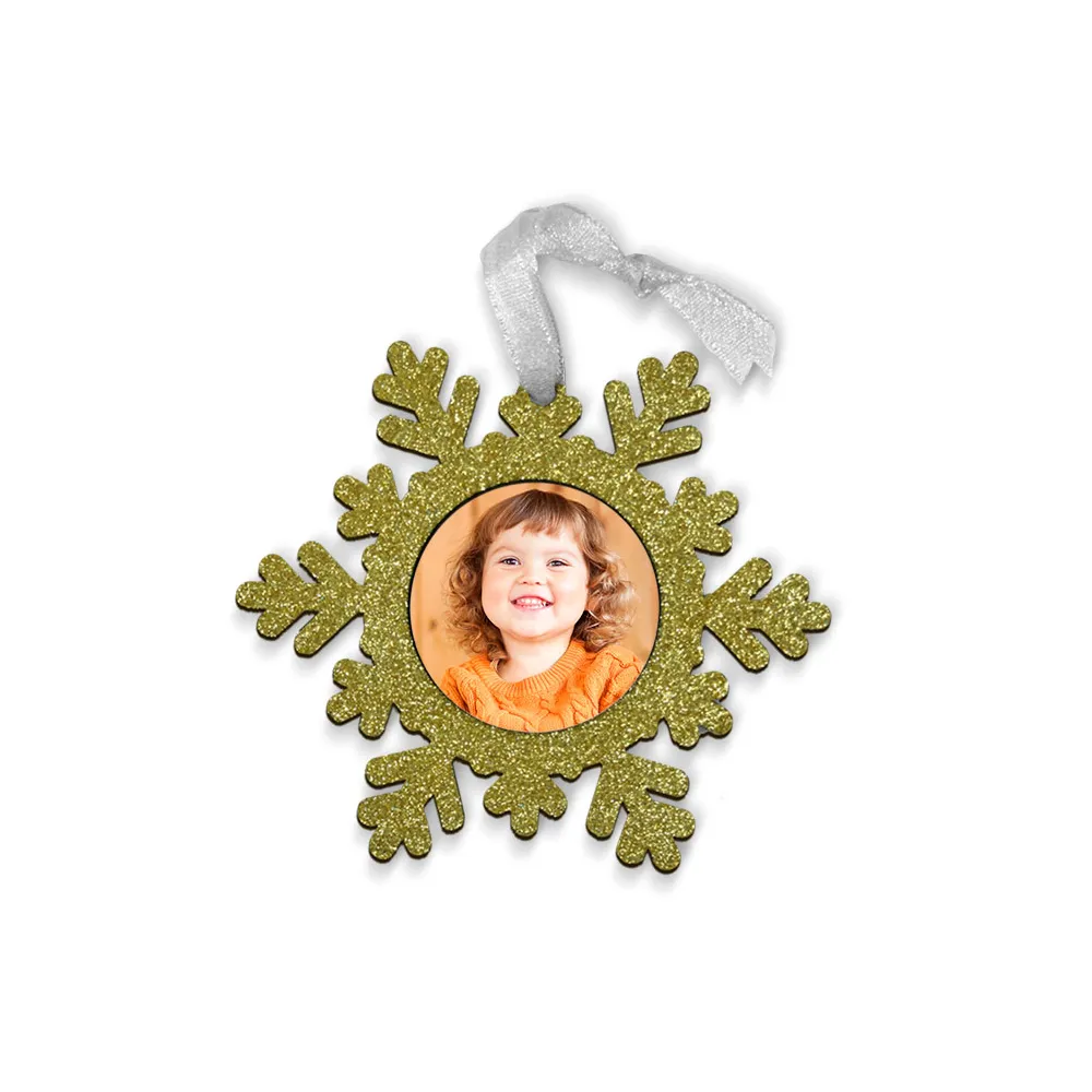 4,48 € Precio con IVAAdornos Copo de nieve fantasía personalizable usando la técnica de la sublimación. Fabricados en Madera MDF con purpurina de diferentes colores y con un diseño en forma de copo de nieve que le da un toque muy navideño.
