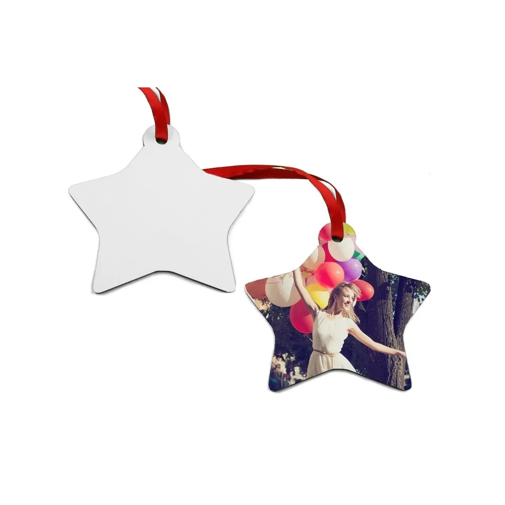Adornos estrella de navidad de madera (2 caras) personalizables usando la técnica de la sublimación. Fabricados en Madera MDF con forma de estrella, ideales para dar un toque navideño y personal. Sublimables a 2 caras.