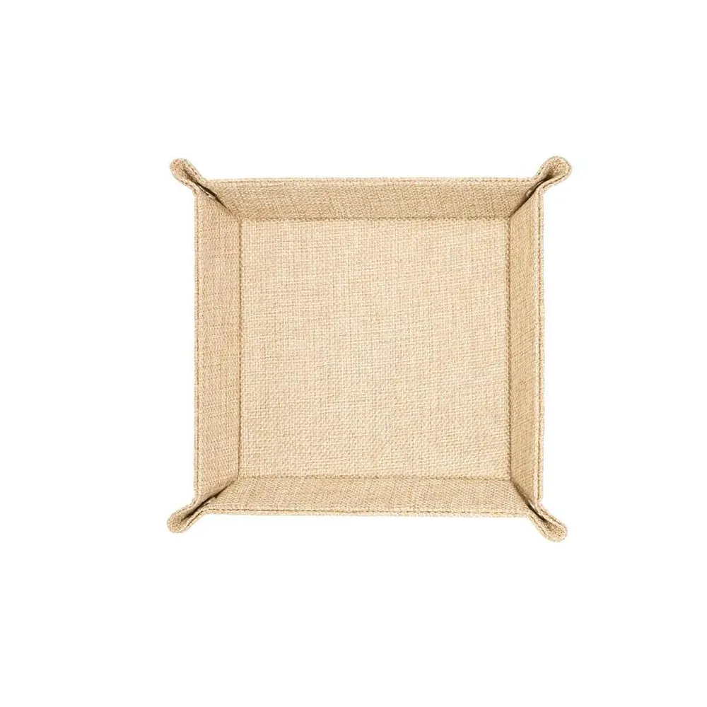 La Bandeja multiusos tipo arpillera para personalizar es liviana y duradera, viene con broche de presión de metal. Fácil de usar. También tiene un excelente efecto de impresión para sublimar. La bandeja de arpillera tiene un aspecto simple y rústico con colores vivos. La bandeja plegable es ideal para la decoración del hogar, como escritorio, mesita de noche o tocador.