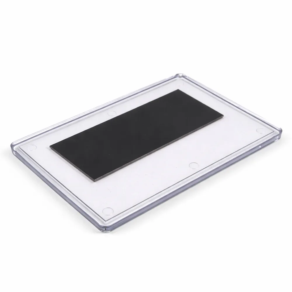 Los Imanes de nevera 90 x 60 mm MAG-JUMBO (x100) incluyen todas las piezas necesarias para crear tus propios imanes acrílicos personalizados: el cuerpo de plástico con imán y la tapa transparente. La superficie de impresión de 90 x 60 mm es ideal para un logo, una imagen, una frase corta. El montaje es manual, simplemente presionando con las manos hasta escuchar un clic.