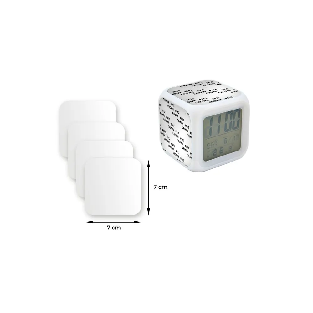 Las Láminas plásticas para Reloj despertador con luz de colores (tipo I) son compatibles con el Reloj despertador con luz de colores y son aptas para sublimación.