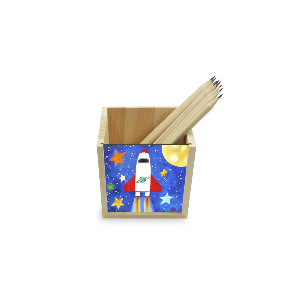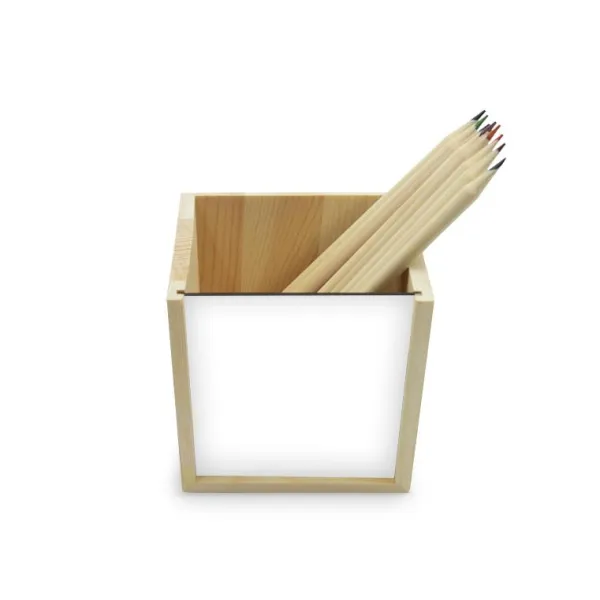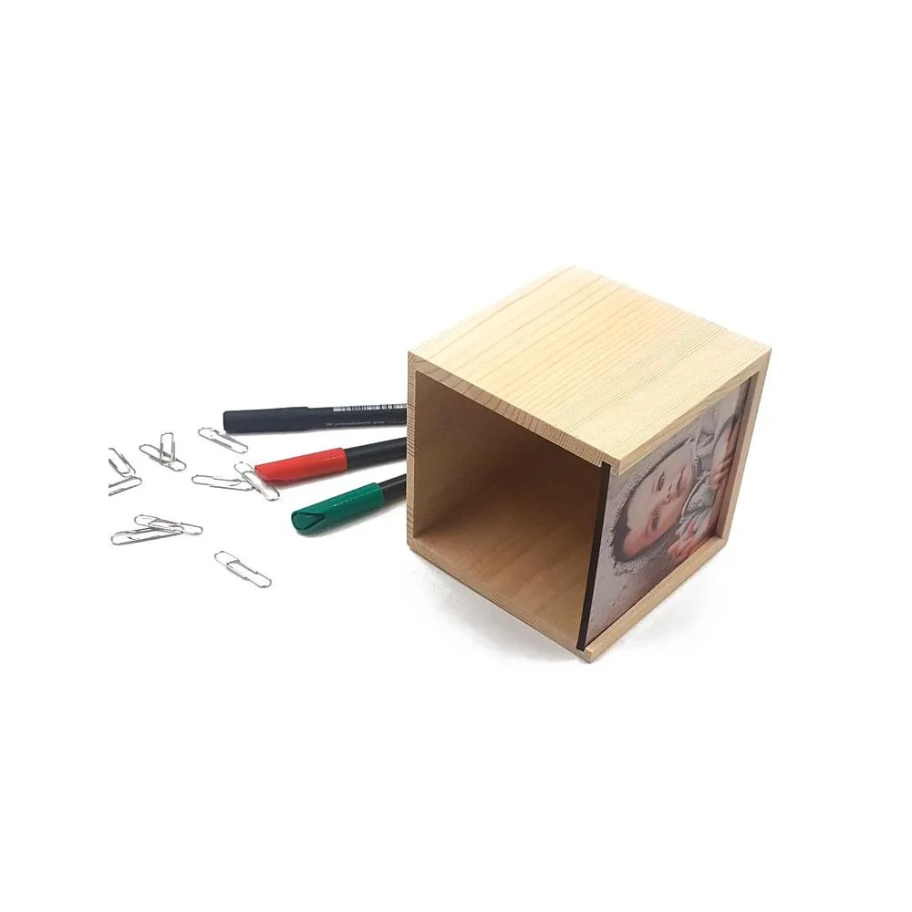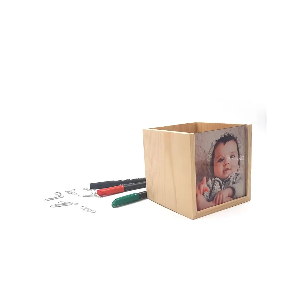 Los lapizeros de madera personalizables permiten personalizar la parte frontal con la imagen. Són ideales como decoración de oficina o para niños.