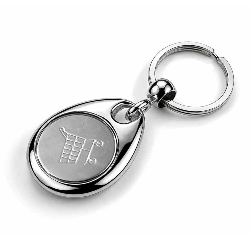 Los Llaveros metálicos con moneda para carro MH-25 CARRO incluyen todas las piezas necesarias para crear tus propios llaveros metálicos personalizados con forma de gota: el cuerpo de metal con el anillo, la lupa redonda y la moneda metálica. La superficie de impresión de Ø 25 mm es ideal para una imagen, un logo o un pequeño texto. Para cortar el diseño se recomienda el uso de una matriz de corte.