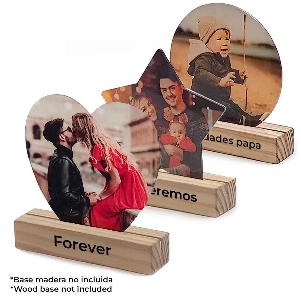 Portafotos de metacrilato + base de madera (corazón con rectángulo)