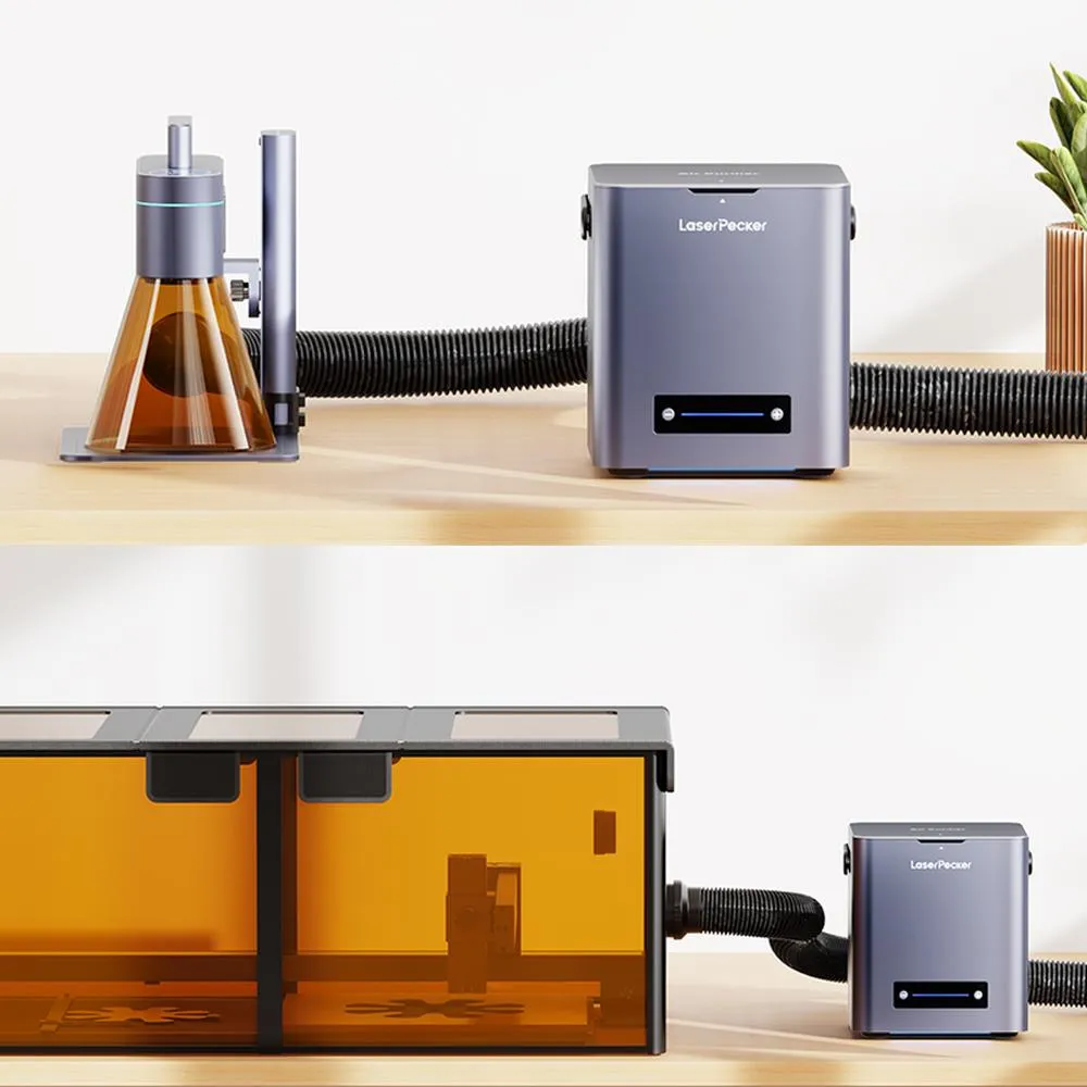 El Purificador de Aire LaserPecker es un equipo de escritorio, compacto y portátil, que garantiza un ambiente de trabajo seguro y limpio, eliminando el 99.97% de las partículas gracias a su sistema de filtración de 4 capas. Con un diseño amigable y fácil de mantener, ofrece un funcionamiento silencioso y una larga vida útil del filtro. Es ideal para mejorar la calidad del aire durante tus proyectos de grabado láser.
