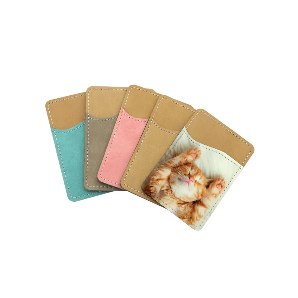 2,27 € Precio con IVAEl Tarjetero para móvil de símil piel es un porta tarjetas que se puede personalizar mediante la sublimación y luego se adhiere a la parte trasera del teléfono móvil. Está fabricado de 100% piel sintética, con un diseño delgado y elegante, que no modifica la forma en que se maneja el teléfono. Tiene el tamaño exacto para guardar las tarjetas de forma segura sin que se deslicen o se caigan. Se adapta a la mayoría de los teléfonos móviles, fundas y carcasas.