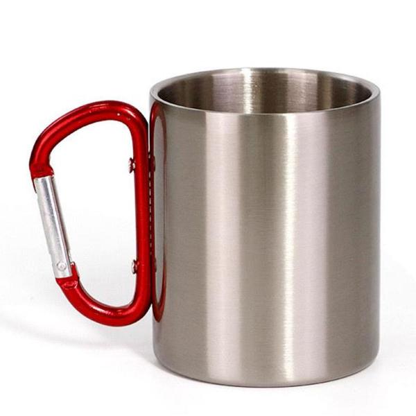 - Asa de mosquetón, perfecto para sujetar la taza en mochilas o cinturones.