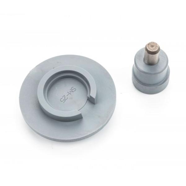 El Útil montaje llaveros SM-25D es un accesorio para montar los llaveros metálicos circulares personalizados, que se utiliza en la Máquina para hacer llaveros e identificadores C-50. Con este molde, el montaje del llavero se hace de forma sencilla quedando perfectamente ensamblado. El área imprimible del llavero montado es circular de Ø 25 mm.