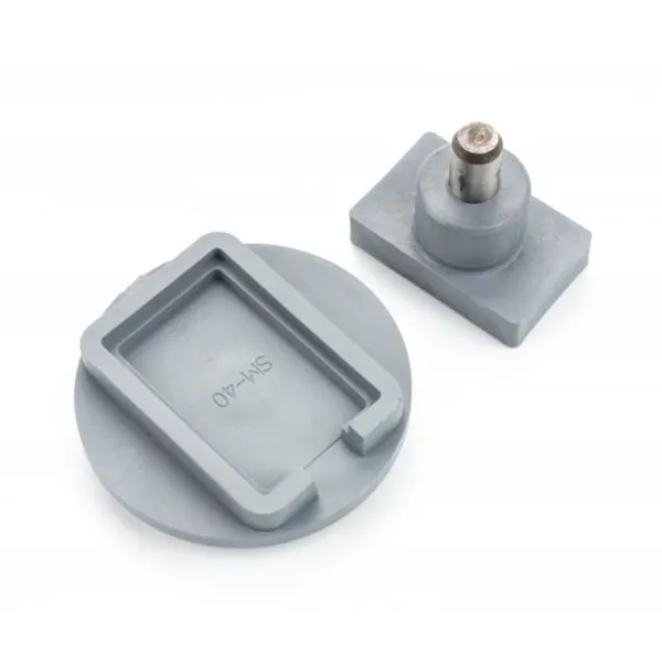 El Útil montaje llaveros SM-40D es un accesorio para montar los llaveros metálicos rectangulares personalizados, que se utiliza en la Máquina para hacer llaveros e identificadores C-50. Con este molde, el montaje del llavero se hace de forma sencilla quedando perfectamente ensamblado. El área imprimible del llavero montado es rectangular de 25 x 40 mm.