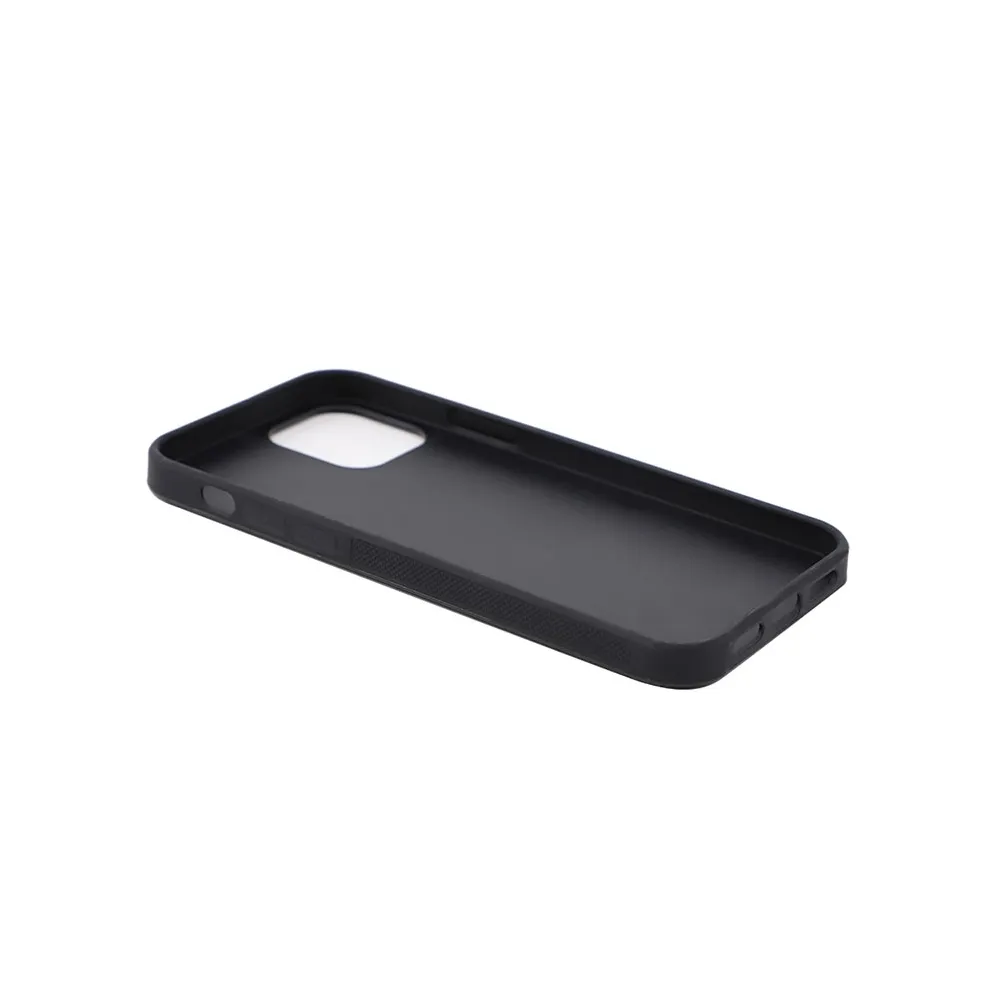Les coques pour sublimation en feuille d’aluminium iPhone 12 Mini, sont préparées pour être sublimées sur la partie supérieure, les rebords restant de la couleur de fond de la carcasse noire.