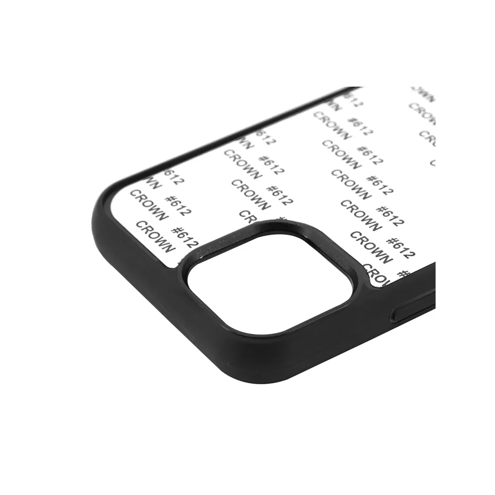 Les coques pour sublimation en feuille d’aluminium iPhone 13 Mini, sont préparées pour être sublimées sur la partie supérieure, les rebords restant de la couleur de fond de la carcasse noire.