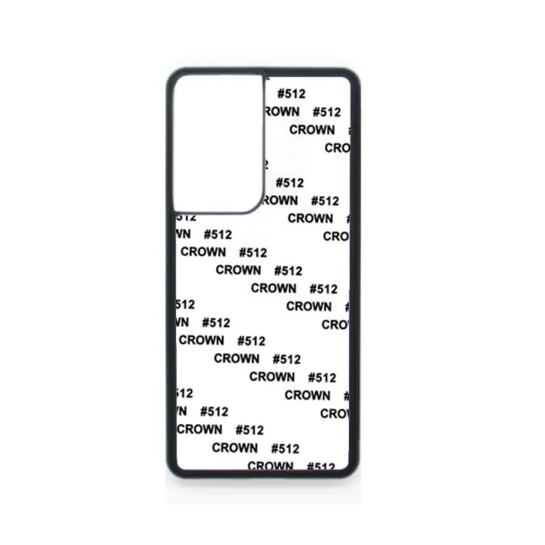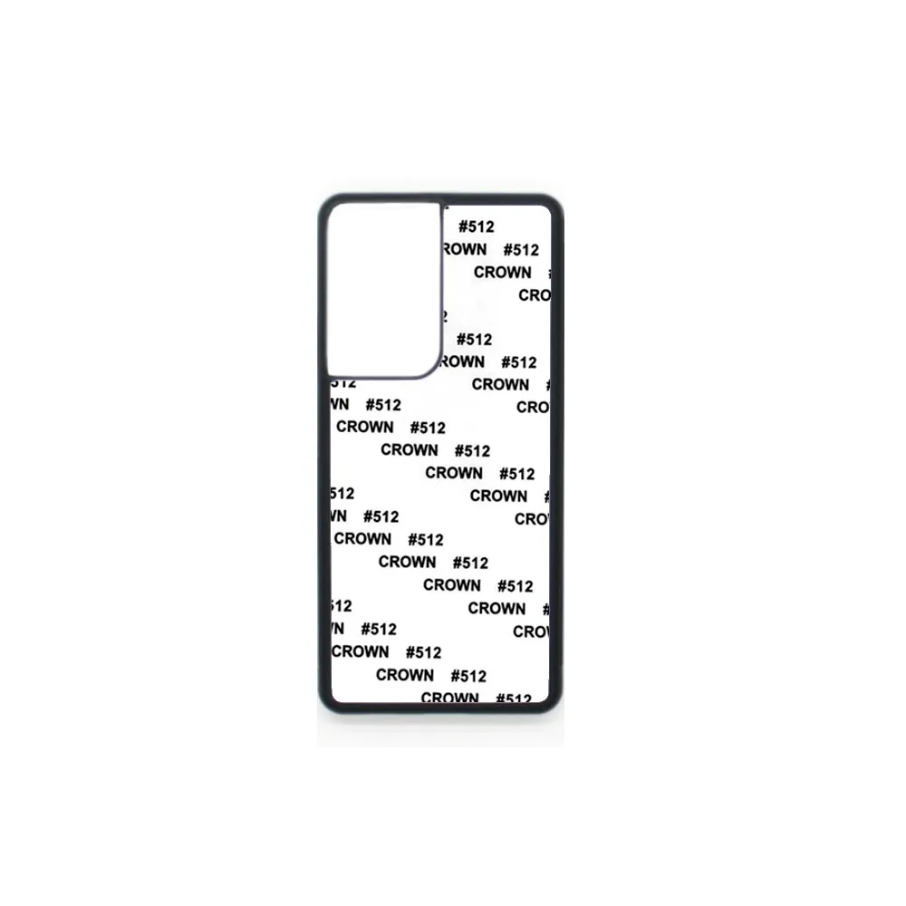 Les coques pour sublimation en feuille d’aluminium Samsung Galaxy S21 Ultra , sont préparées pour être sublimées sur la partie supérieure, les rebords restant de la couleur de fond de la carcasse noire.