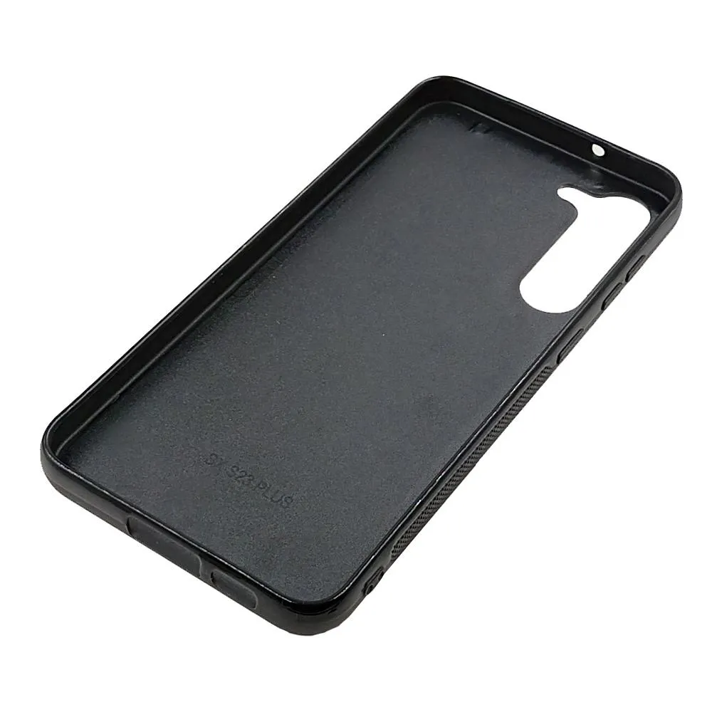 Les coques pour sublimation en feuille d’aluminium Samsung Galaxy S23 Plus sont préparées pour être sublimées sur la partie supérieure, les rebords restant de la couleur de fond de la carcasse noire.