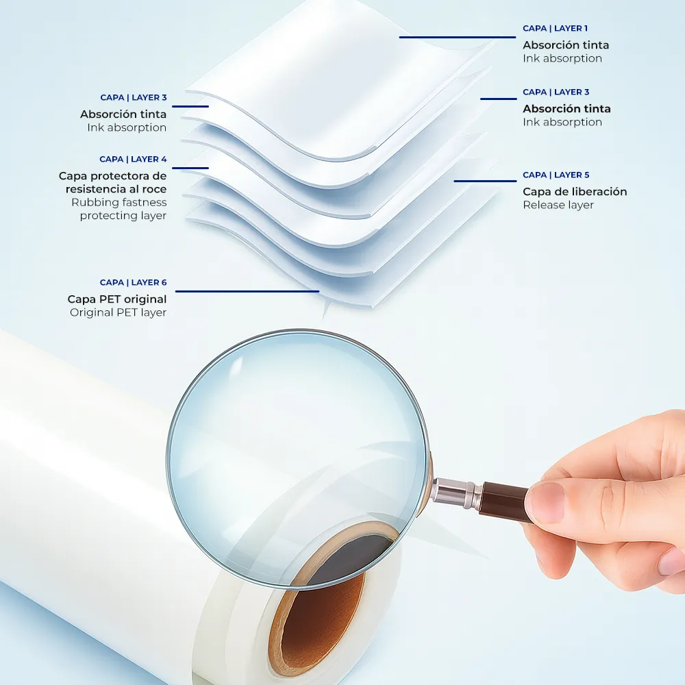 Grâce à son traitement antistatique frontal et à sa surface arrière antidérapante, il reste stable tout au long du processus d'impression, évitant les déplacements du film ou les erreurs de décalage de la tête d'impression. Le transfert ne s'effectue que sur la zone imprimée, éliminant complètement le besoin de découpe ou d'échenillage manuel, ce qui permet de gagner du temps et d’économiser des matériaux.