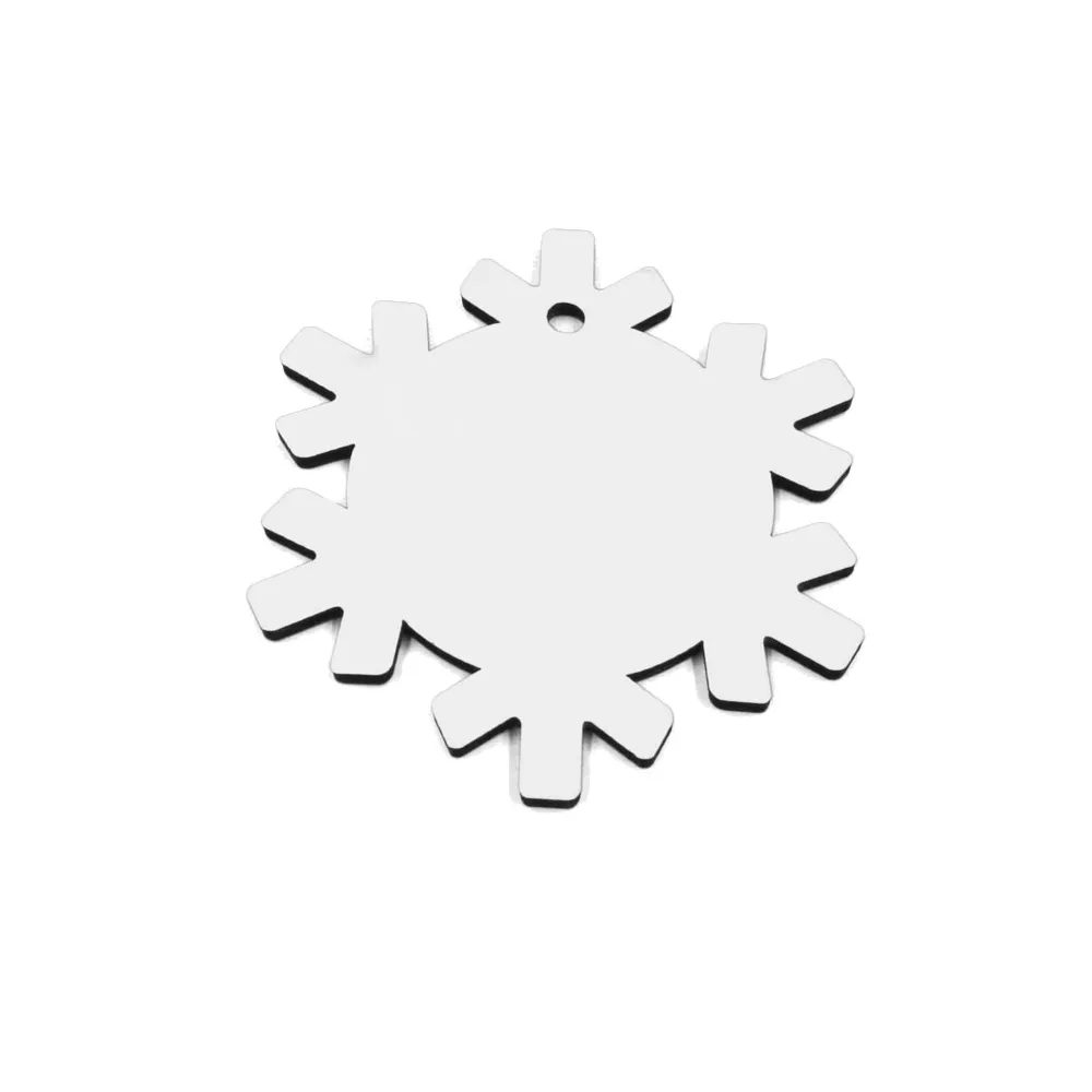 3,01 € Prix avec TVAOrnements flocon de neige en bois (2 côtés) personnalisable utilisant la technique de la sublimation. Fabriqué en bois MDF avec une forme de flocon de neige, idéal pour donner une touche de Noël et personnelle. Sublimable sur 2 faces.