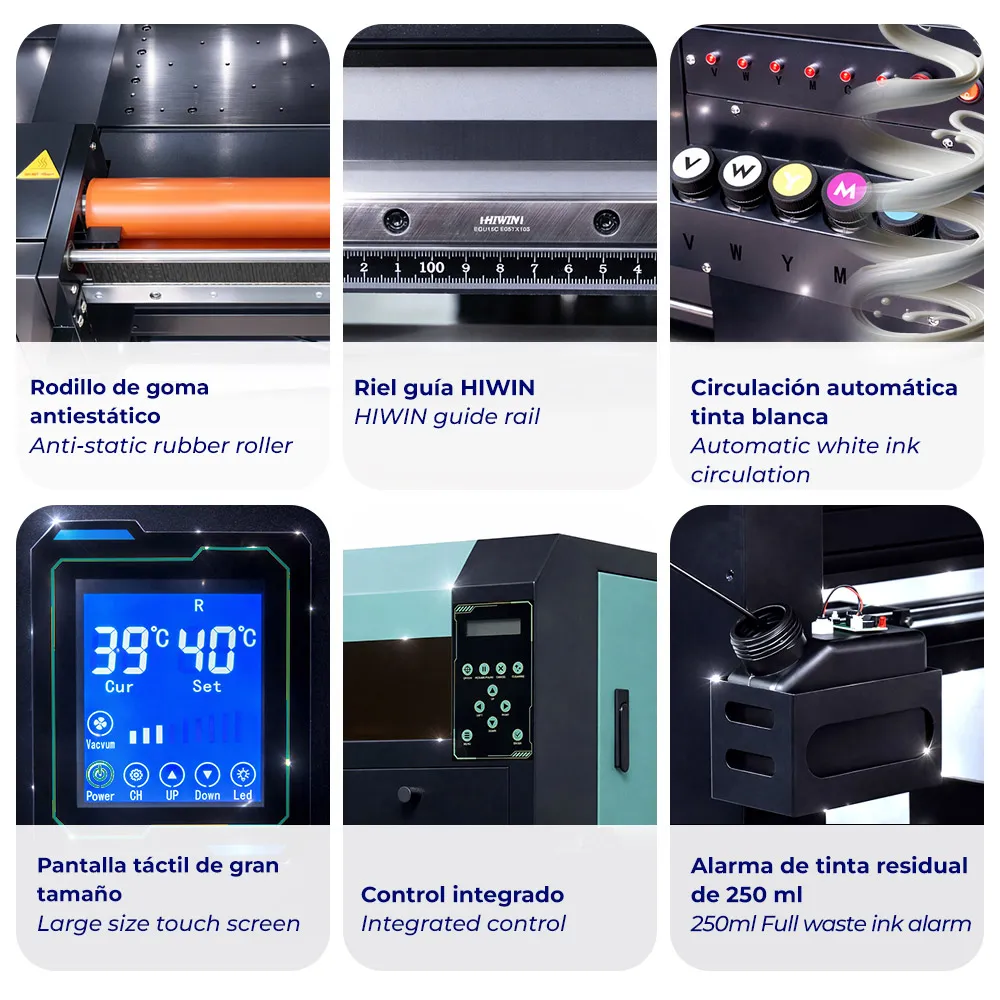 - Compatibilité des supports : film TPU flexible pour l’impression texture et films UV DTF conventionnels