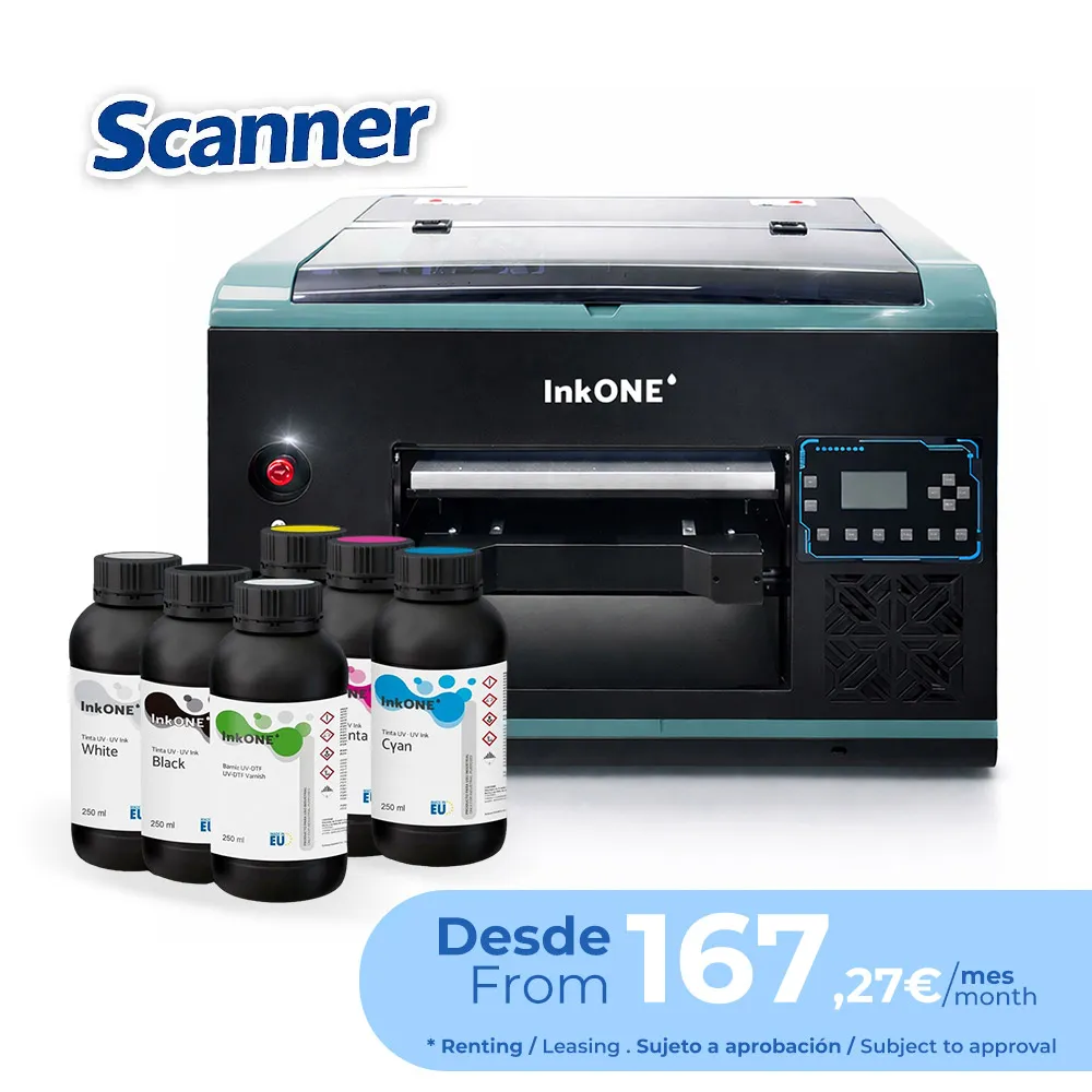 9 546,90 € Prix avec TVALe Pack Imprimante UV InkOne VM5 – 30x40cm (encres) est une solution professionnelle complète, prête à démarrer l’impression UV. Il inclut l’imprimante VM5 avec les encres UV InkOne et le vernis UV, idéale pour la personnalisation directe sur objets rigides avec des finitions premium.