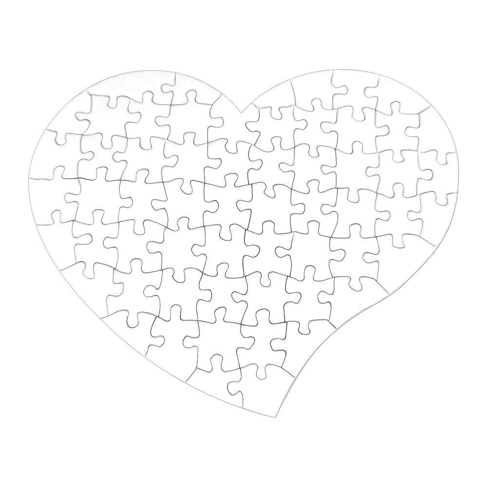 Le Puzzle cœur 59 pièces haute qualité (24,5 x 20 cm) est conçu pour la personnalisation par sublimation, offrant un résultat brillant et durable. Sa surface laquée de haute qualité garantit des couleurs vives et précises, idéales pour les cadeaux romantiques ou les occasions spéciales telles que la Saint-Valentin, les anniversaires ou la Fête des Mères.