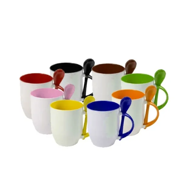 Tasses en cerámiquee colorées avec cuillère para Sublimación