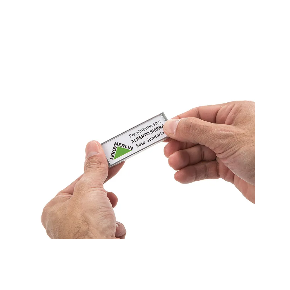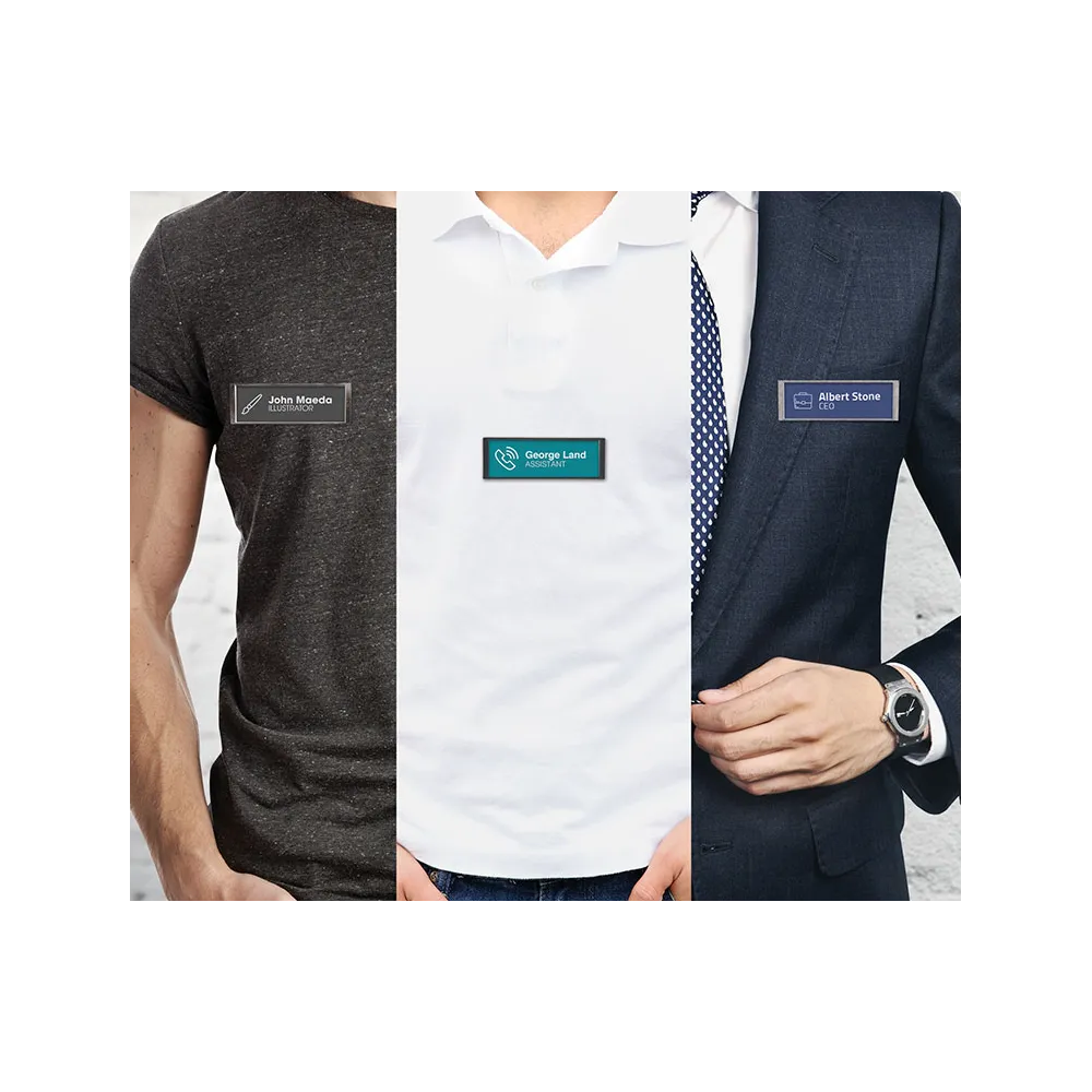 Vengono utilizzati anche per identificare rapidamente il personale di un'azienda , in base al nome e alla funzione. Sono molto utili nelle aziende che offrono un servizio clienti personalizzato, migliorando la comunicazione e l'organizzazione. Hanno le dimensioni ideali per essere personalizzati con un logo, una posizione gerarchica o una funzione, insieme al nome della persona.