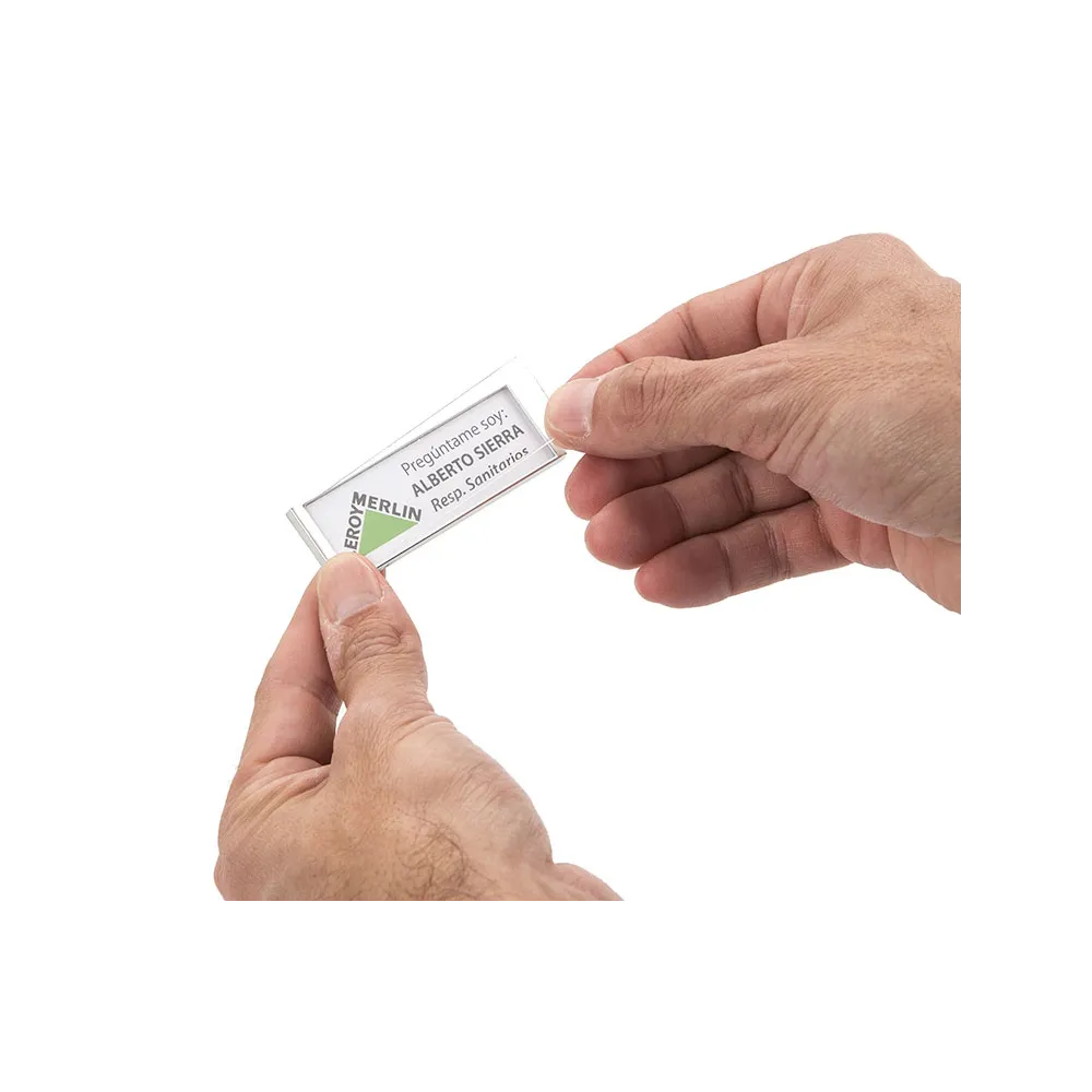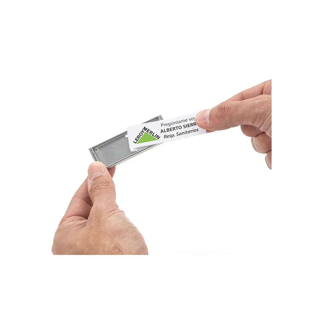 I badge o badge identificativo personali sono un modo semplice e pratico per creare etichette per le persone che partecipano a un evento sociale, aziendale o politico. Possono essere montati manualmente in pochi secondi, per questo sono ampiamente utilizzati per identificare organizzatori, relatori o volontari in tutti i tipi di eventi , come corsi, seminari, mostre e fiere.
