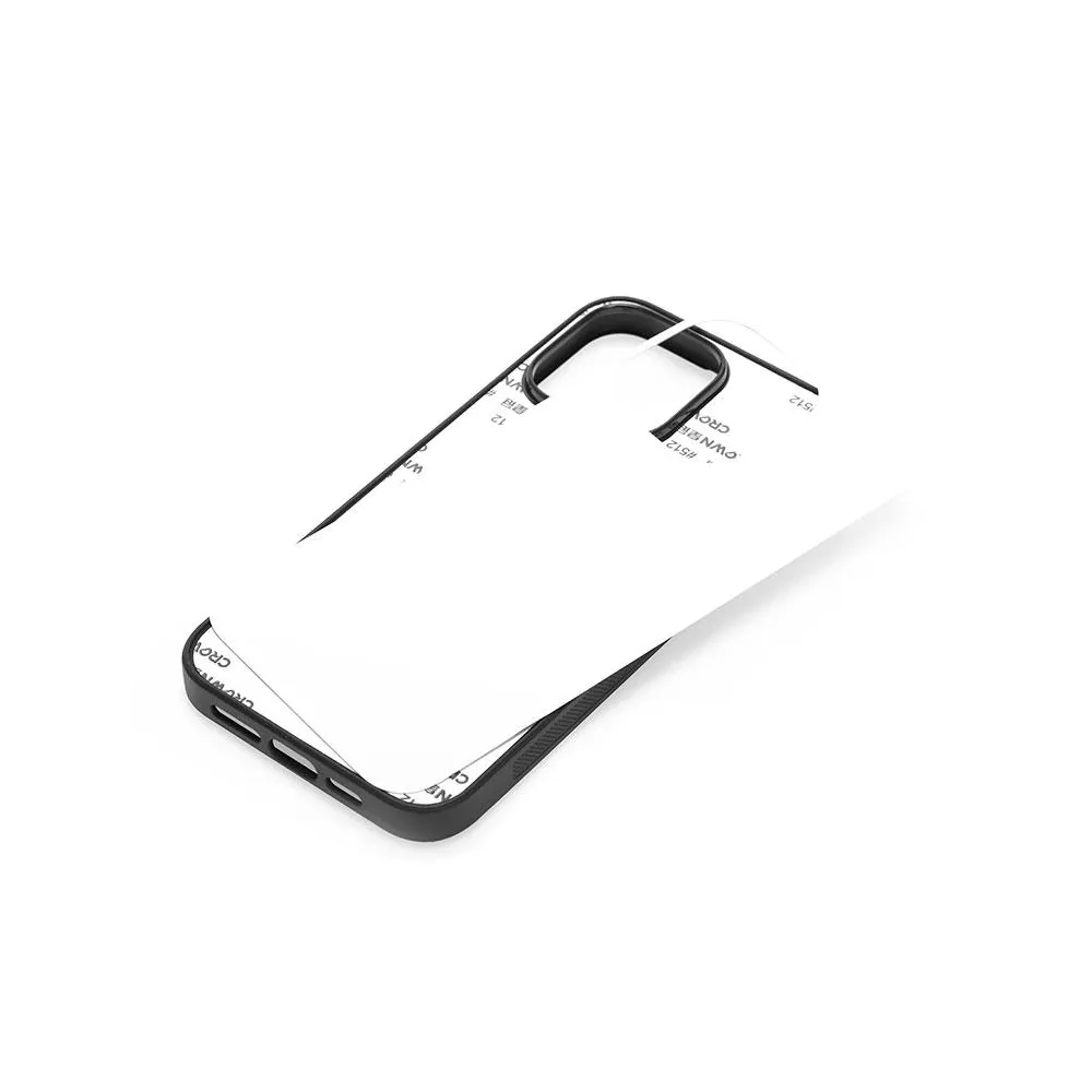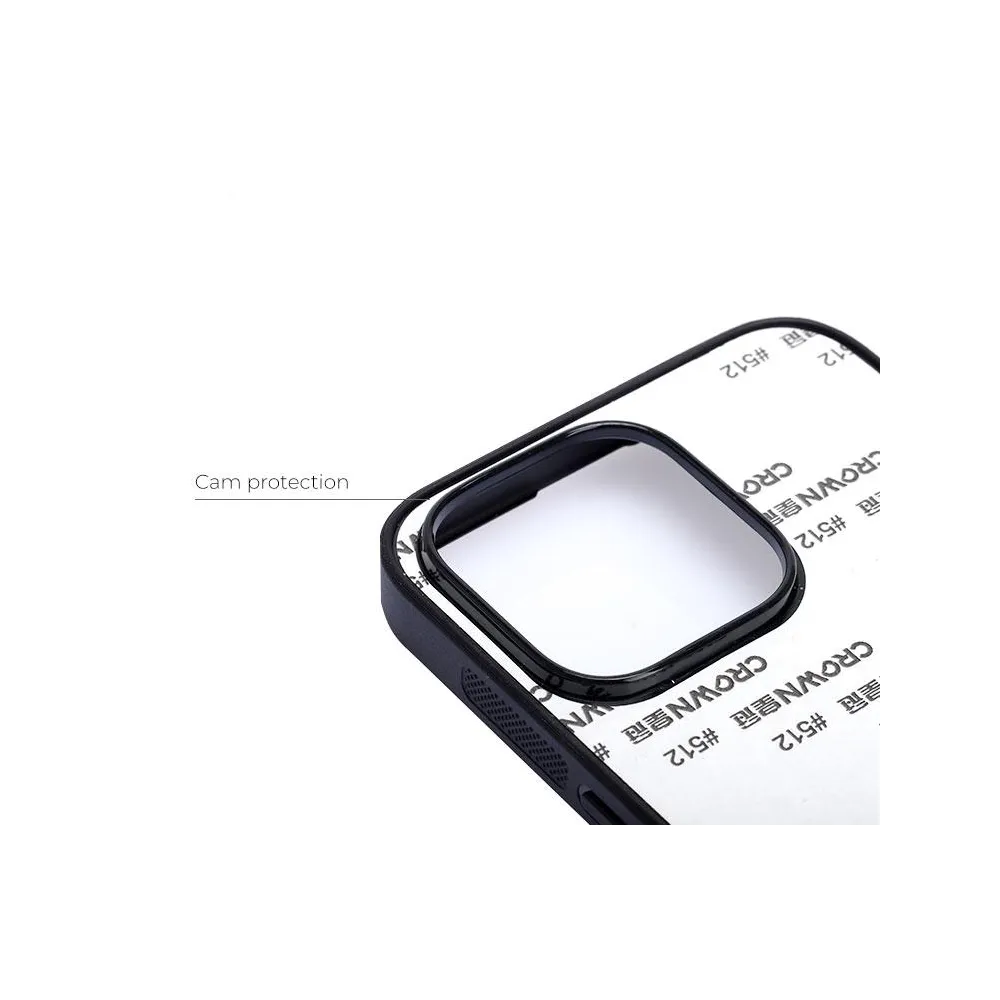 Le cover para sublimación in fogli di alluminio per iPhone 15 Pro sono predisposte per essere sottoposte a sublimazione nella parte superiore, lasciando i lati nel colore della cover nera.