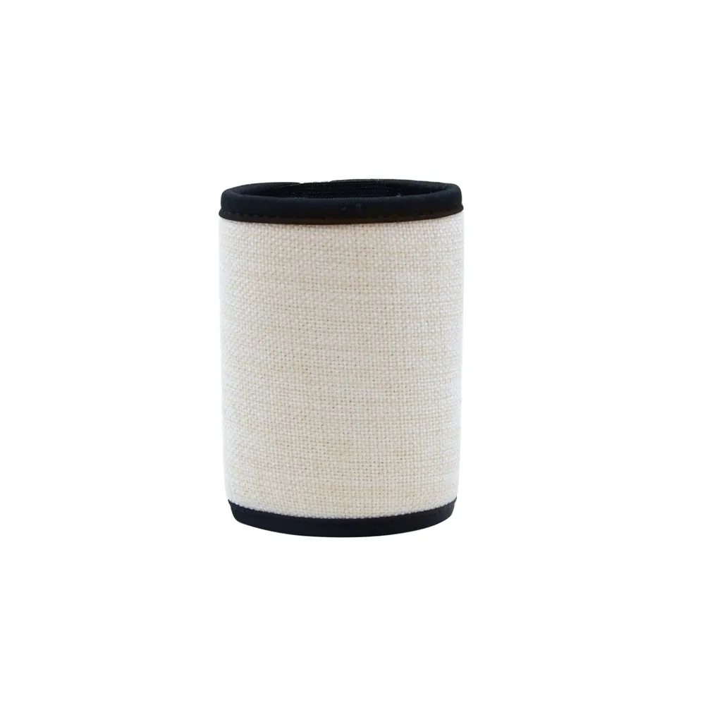 Il neoprene aiuta a mantenere la temperatura ed è dotato di una chiusura in velcro per adattarsi alla dimensione desiderata. La parte lino può essere personalizzata.