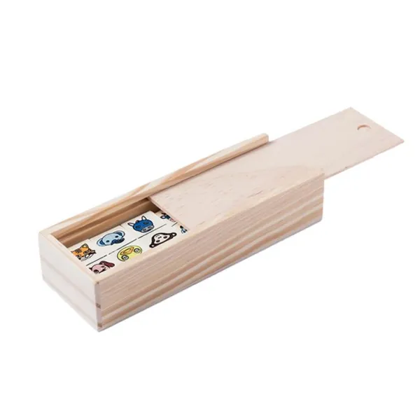 Giochi di domino personalizzabili tramite la tecnica della sublimazione. Questo gioco educativo è ideale da regalare. 28 pezzi di domino legno con custodia con coperchio scorrevole.