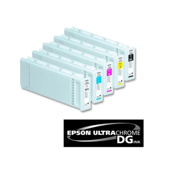 Inchiostri UltraChrome DG per Epson SC-F2000 / SC-F2100 sono disponibili in cartucce da 600 ml sviluppate da Epson e garantiscono prestazioni ottimali nella stampa t-shirt . Questi inchiostri contengono pigmenti a base d'acqua per ottenere stampe di alta qualità e morbide al tatto.