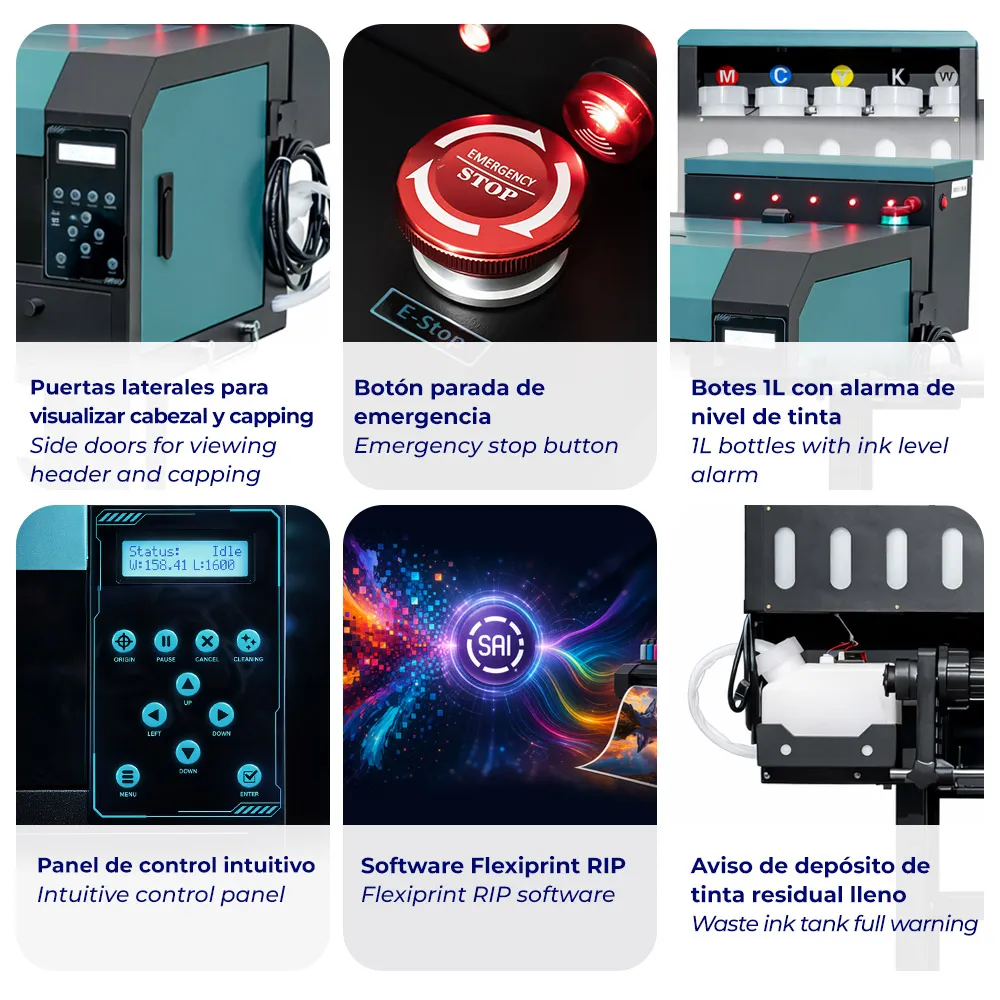 - Sensore di contatto della testina: protegge le testine di stampa da possibili danni, prolungando la vita utile della macchina.