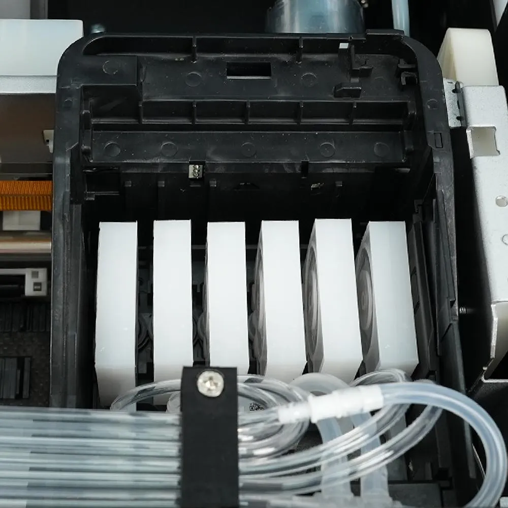 - Inchiostri DTF: 5 bottiglie da 250 ml (Ciano, Magenta, Giallo, Nero e Ultra Bianco)
