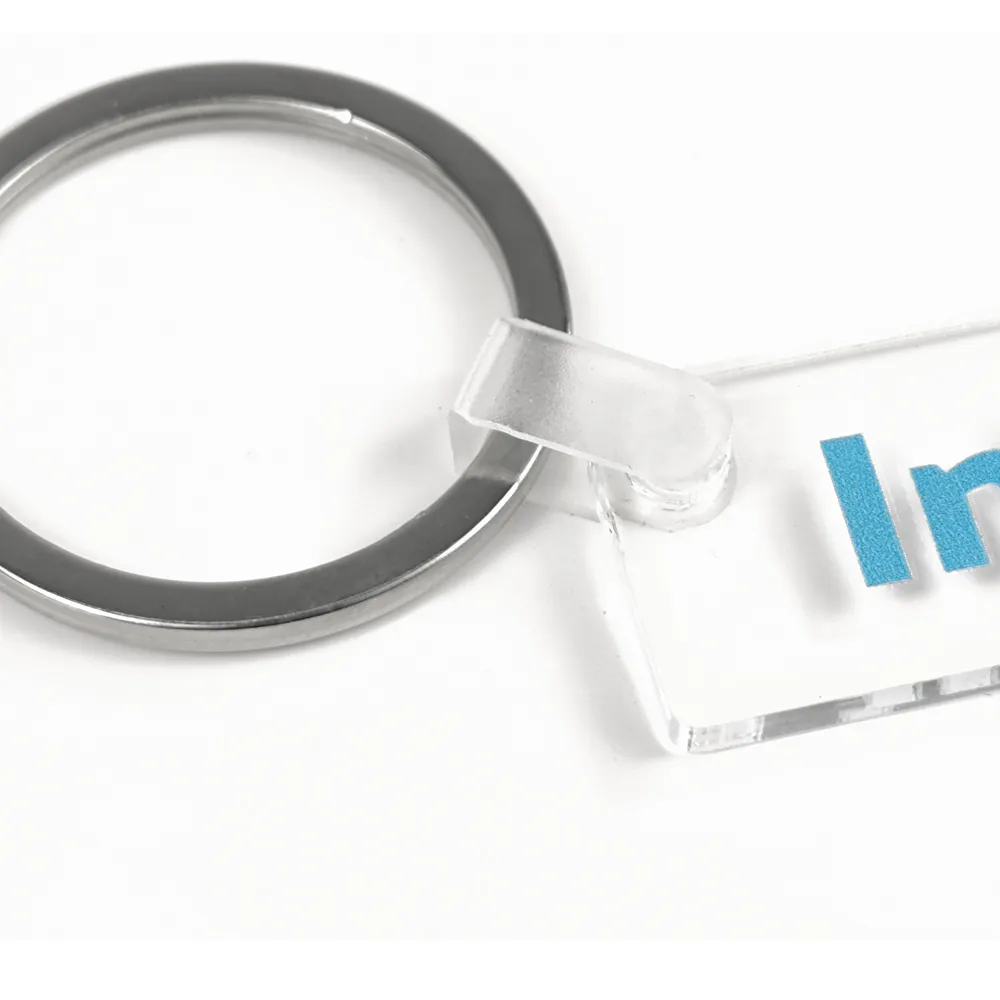 Il portachiavi in acrilico è dotato di una pellicola protettiva da rimuovere prima della personalizzazione.
