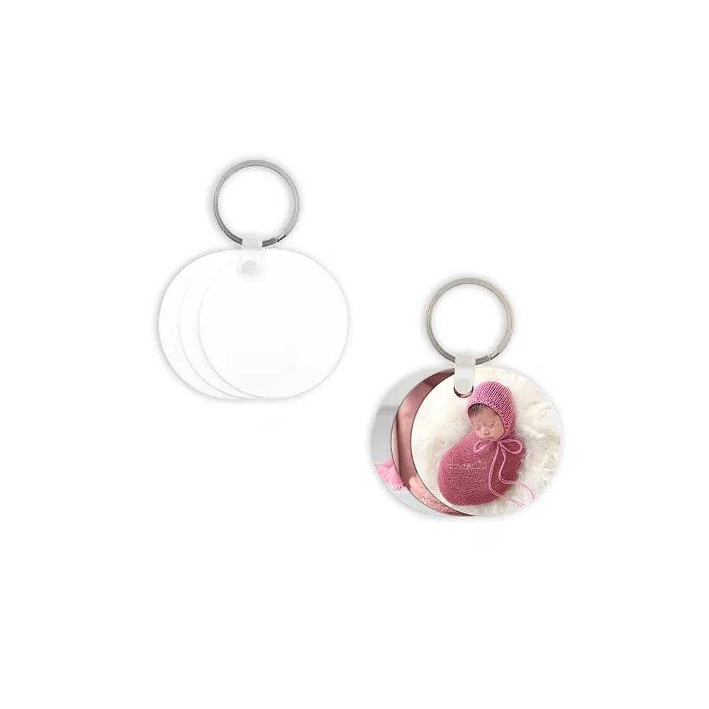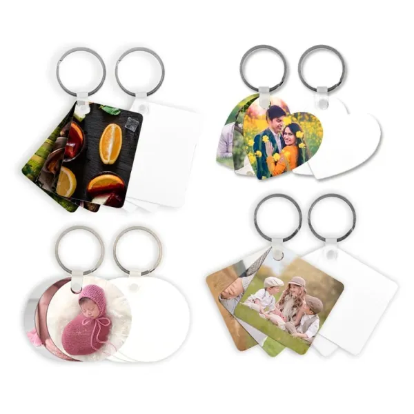Portachiavi in lamina bifacciale da personalizzare con la tecnica della sublimazione.