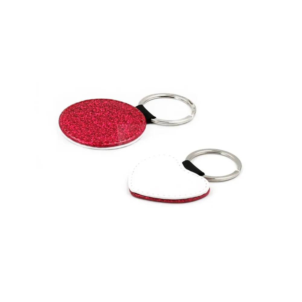 Portachiavi in similpelle rosa con glitter (varie forme) personalizzabili con la tecnica della sublimazione.