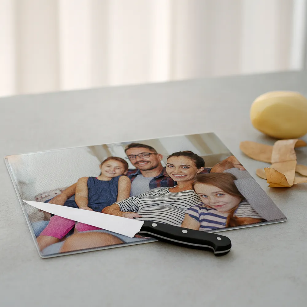 Tagliere in vetro rettangolare personalizzabili tramite la tecnica della sublimazione.
